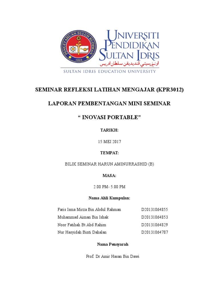 Laporan Seminar Refleksi Latihan Mengajar Pdf